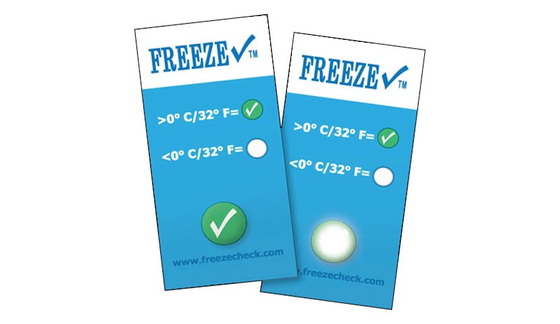 Available in increments of 500 pieces, Freeze Check features a durable, compact indicator that tells you at a glance if products have been exposed to freezing temperatures.